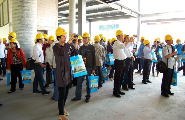 与会代表参观第二批全国建筑业绿色施工示范工程——中新生态大厦土建总包工程(苏州二建建筑集团有限公司承建)