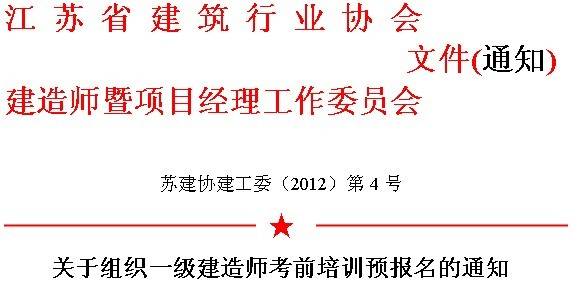 按照国家人力资源和社会保障部、住房和城乡建设部的统一安排,2012年度一级建造师统一考试定于2012年9月22、23日进行。为了帮助广大考生系统复习,了解考试范围、重点和难点,掌握应考和答题技巧,做好应考准备,提高考试通过率,我会将于7月下旬开始举办部分专业一级建造师考前培训班。现将具体事项通知如下: