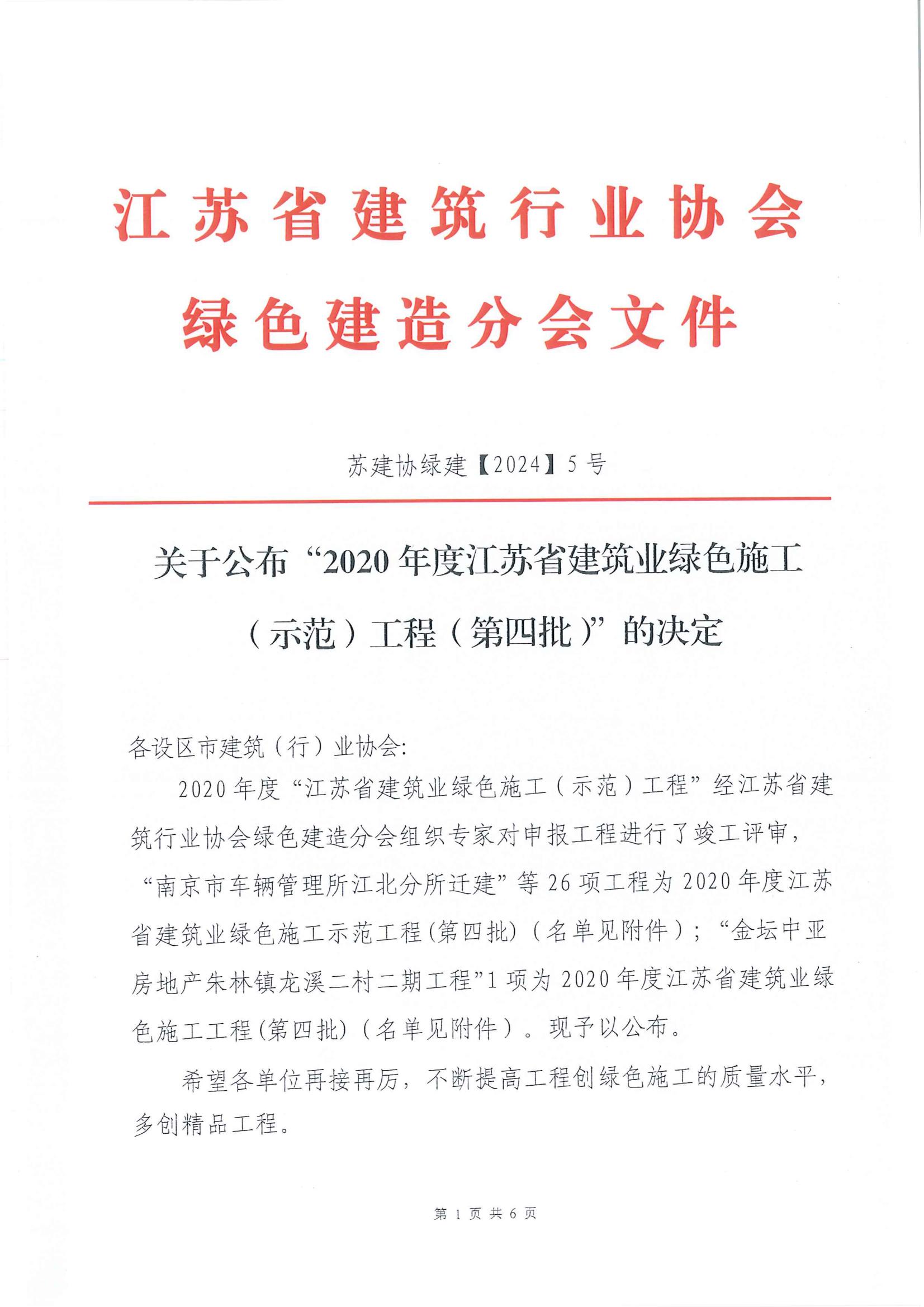 关于公布“2020年度江苏省建筑业绿色施工(示范)工程(第四批)”的决定