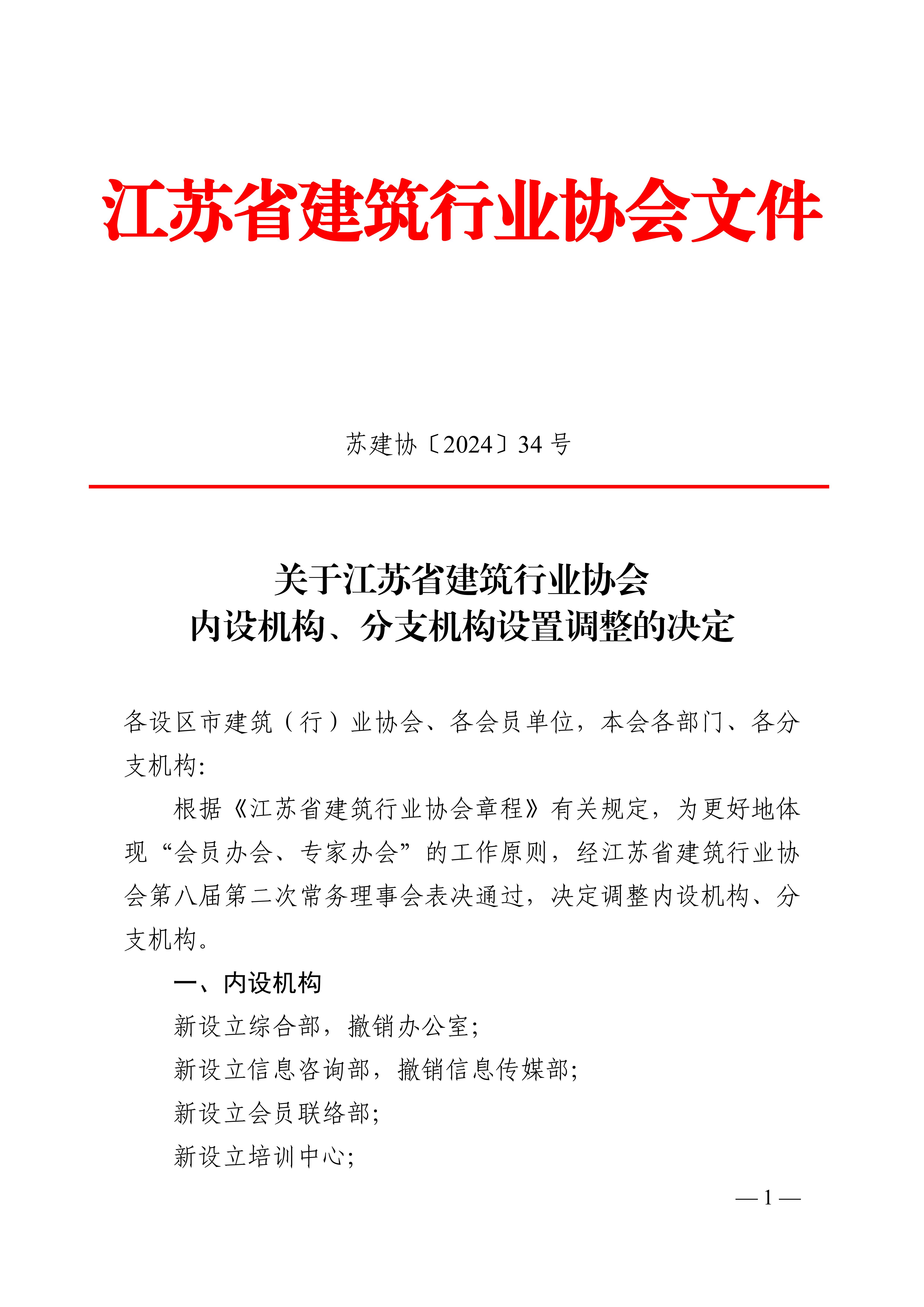 关于江苏省建筑行业协会内设机构、分支机构设置调整的决定