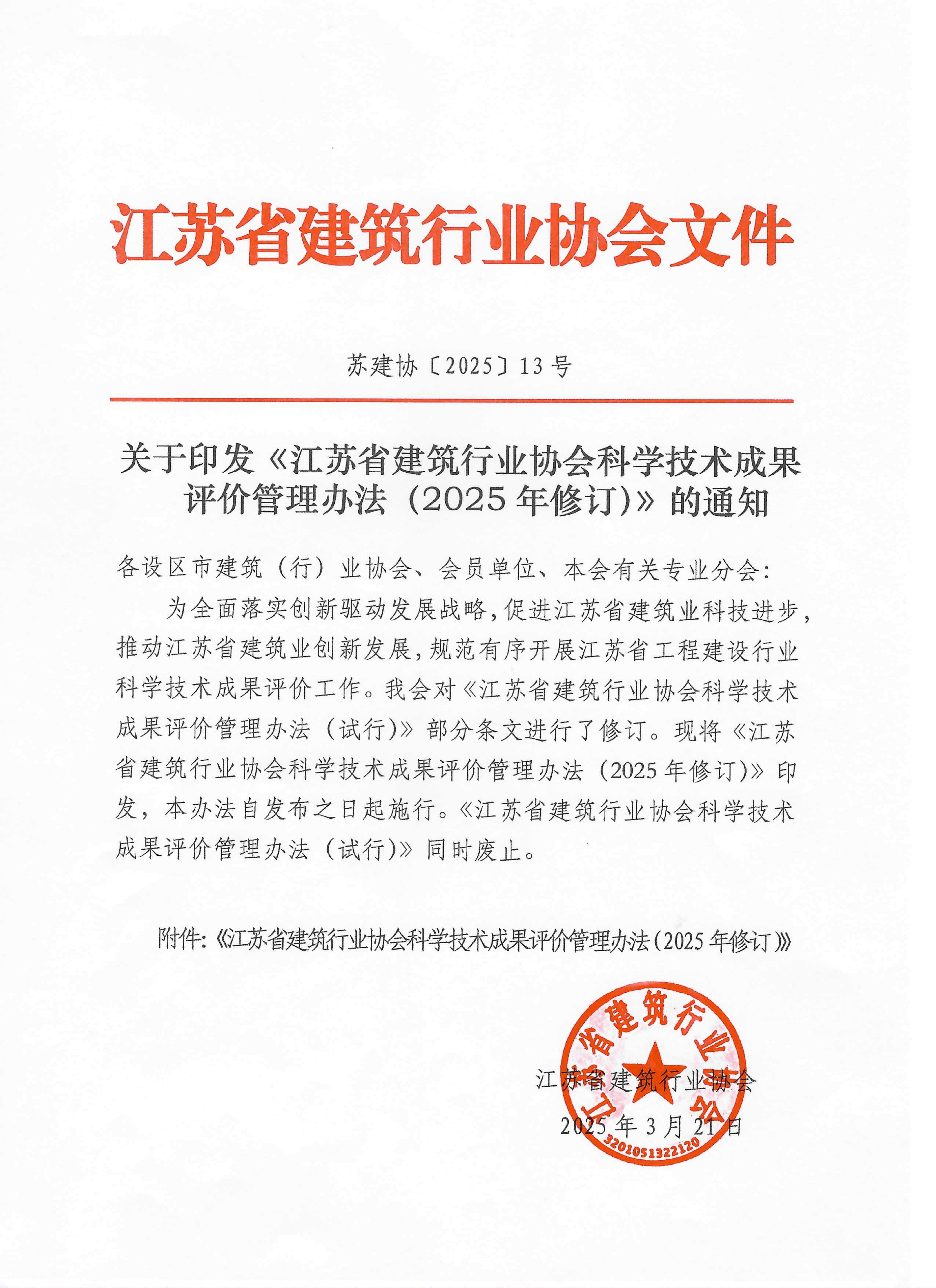 《江苏省建筑行业协会科学技术成果评价管理办法(2025年修订)》